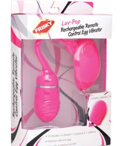 Take your love on the go with the sweet Luv-Pop Rechargeable Remote Egg Vibe! This powerful bullet has 10 fun settings, with a USB rechargeable design that lets you use it over and over again, without the hassle or cost of batteries. The smooth silicone is non-porous, phthalate-free, and silky soft to the touch. Pull the sturdy silicone retrieval cord to remove- you will feel every subtle pleasure ripple as it moves in and out of you. Use the wireless remote to control your pleasure, or use it with a partner for discreet fun- it works up to 100 feet away! Take this great little egg home today and get ready for a pop of pleasure!