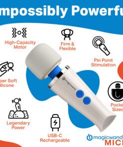 Stop right there! Before you go anywhere, bring your new favorite travel buddy with you! This small but mighty Micro Magic Wand vibrator packs a powerful punch! The motor reaches speeds up to 6,500 RPM and delivers 3 speeds and 4 vibration settings! The plush, soft, silicone head gently rubs against your most sensitive areas while the flexible neck bends to your desires as you find just the right angle to massage yourself with. Cordless and rechargeable, you won’t have to worry about finding a wall outlet to power up your pleasure; take it on the go anywhere and enjoy it anytime you can! Guaranteed to give you pleasure, it comes with a 1 year limited warranty and is a FDA registered Class 1 medical device. Use only with water-based lubricants. Clean after every use. To clean, wash with warm water and mild soap, then spray with a toy cleaner and pat dry. Store separate from other toys and keep out of direct sunlight.