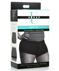 Combine the comfort of boxer-briefs with the functionality of a built-in strapon harness for ultimate versatility! This breathable, cotton and spandex blend underwear is snug fitting with room to move, stretch and play! This Active Style Harness is particularly good if you want to be able to pop your strapon dildo into place without having to change clothes, strip down, or adjust lots of harness straps. Just pop the dildo in and you’re ready to go! The underwear has a thick, supportive elastic band that helps carry the weight of some heavier dongs, and a stretchable O-ring in the front that fits and adjusts to fit most dildos. After you’re done satisfying your partner, your boxer-brief pair is easily washed on a ‘cool’ setting in the washing machine!