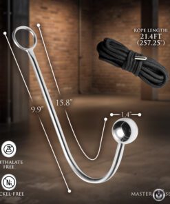 Transform your bondage sessions with an expertly crafted stainless steel anal hook. Imagine how the rounded ball ensures satisfying stimulation, while its curved, ergonomic design makes it possible to wear during intense scenes. Let this unique design keep you in full control, combining authority with ease of use. Enhance your rope play further with 21 feet of strong polyester rope included for shibari and kinbaku rope bondage, enabling creative and effective restraint techniques. Engineered for durability and maximum pleasure, this is a must-have addition to your collection. Add it to your routine today and enjoy endless possibilities for dominance and satisfaction.