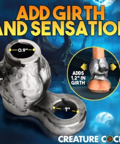 Become the silver wolf of your partner’s dreams or nightmares with this Night Prowler sleeve and ball stretcher! It fits over your shaft, adding pressure to your rod, while also wrapping around your balls and stretching them! Made out of premium, phthalate-free, body-safe silicone, it is best used only with water-based lubricants only. Enhance your playtime and the sensations by giving yourself a rod that gets thicker by adding these two bulging, wolf-knots at the base! It stays in place due to the ball stretcher wrapped around your family jewels, and essentially tugs your balls every time your partner goes deep! Enjoy adding this to your kinky cosplay and fantasy roleplay while indulging with your partner! After use, wash it with warm water and mild soap, then rinse it off and spray it with a toy cleaner. Pat dry and store in a cool, dark place.