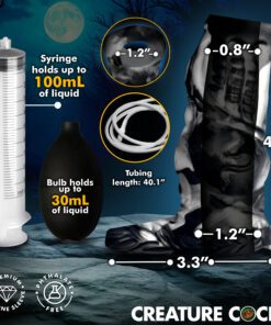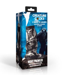 Key Features: Fantasy Monster Dong: Transform your strapon or your rod into a Night Prowler penis! The grooves, bumps, ridges, and the big knot above the base provide a wild ride for your partner! Squirting Cum: The sleeve has a long, silicone tube connected to it that can deliver lube, cream, cum, or squirt of your choice! Use the syringe... Read more