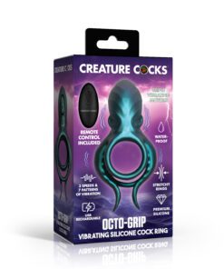 Dive into your wildest oceanic fantasies with the Octo-Grip Vibrating Silicone Cock Ring! This unique and eye-catching design features a large octopus head that sits snug at the base of the shaft against the pelvis, while the tentacles wrap around to keep things securely in place. Feel triple vibrating motors bring intense sensations with three speeds and seven patterns that can be adjusted with the handy remote. The two curved tentacles tease the clit and tickle the balls for extra stimulation. The soft, premium silicone is stretchy and body-safe for endless comfort. Rechargeable via USB and rated IPX6 waterproof, it’s perfect for playtime in any environment.