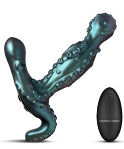 Dive into the depths of ecstasy with this intricately designed prostate vibrator. Boasting a captivating, deep metallic blue and purple finish, it takes inspiration from the mysterious, lusty, tentacle-covered deep-sea monsters of your fantasies for a bold and unique touch. With 5 gyration settings and 10 intense vibration patterns, you’ll experience precise P-spot stimulation every time. The shaft is expertly shaped at 4.6 inches with a flexible, rounded tip for superior comfort and precision. A T-shaped base completes the design, providing simultaneous perineum and ball stimulation. Crafted from top-quality, body-safe silicone, this luxurious pleasure device includes a wireless remote, putting you in complete control of your adventure.