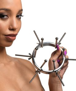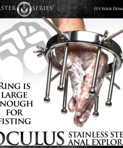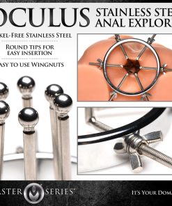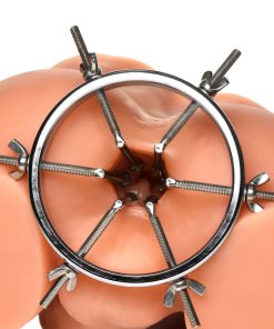 This stainless steel anal explorer is perfect for those into medical play who want to expand and stretch open their backdoor! Made out of strong, durable, non-porous, nickel-free steel, it’s compatible with all lubricant types and is nonporous. The Anal Explorer consists of one large ring with a diameter of 4.1 inches and 6 dilators that have smooth rods with small, round, balls on the ends of them. Insert it almost 3 inches deep and spread their hole wide open! The ring is wide enough for you to fit your fist through, as well! Each dilator rod can be adjusted individually using the wingnuts to tighten or loosen the position on the screw. Only the smooth steel will be pressing against the sensitive tissue of the anus while the spiraling screws are outside against the buttocks. To clean after use, rinse with warm water and mild soap or boil it in water. Then spray it with isopropyl alcohol and wipe clean.