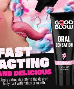• Flavored Gel: Enjoy the sweet taste of cotton candy as you go to town on your partner!