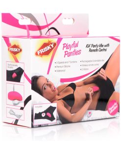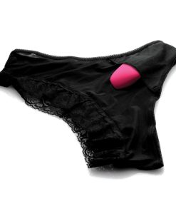 Get frisky with your partner at home or out on a date! This remote control panty set puts the power in your hands while a premium silicone vibrator vibrates within these sexy black panties! The push of a simple button will tease your writhing plaything with 3 speeds and 7 patterns of vibration! Create your own fantasies and bring them to life. The flexible, ergonomically-shaped vibe fits discreetly into the included, stretchy, one-size-fits-many panties or the crotch pocket of many other panties. It can also be used without the remote control and fits comfortably in your palm for a more hands-on approach. This non-porous and phthalate-free material should not be used with silicone lubricants. Clean after use with mild soap or a toy cleaner.