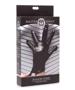 This textured glove is so versatile that it may become a staple in all of your sexual experiences! So many ways to use… finger, stroke, massage, or spank. Whether you are male or female, playing solo or with a partner, this glove will show you love! Each of the five fingers is uniquely shaped for a range of sensations during anal or vaginal insertion: smooth and tapered, bold ridges, penis-shaped, raised nubs, or bulbed with subtle ribbing. The palm has a zig-zag tread that brings extra excitement to a handjob or masturbation. Give your lover a sensual massage with the variety of textures or add a new element to your spankings! This double-sided glove works on both hands and is compatible with silicone and water-based lubricants. Clean with mild soap and water.