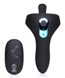 Help yourself slide this toy on by using your favorite water based lubricant. Once one, adjust the ring for comfort and then play with pressing against the vibrator while seated. Use the remote control to cycle through different patterns of vibration hands free! Once playtime is over, wash with warm water and antibacterial soap then spray down with a toy cleaner and dry.