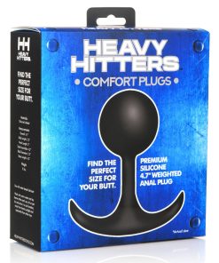 Learn what your ideal size is with these Heavy Hitter Comfort Plugs! The round ball serves as a large bulb for your backdoor to learn to pop inside. Test it out and see what your perfect size is! As you learn to take the big head inside of you, you can also learn to hold it there with the resistance from the solid, metal core! Enjoy the weighted center of the plug as it adds extra pressure inside you as you shift into different positions! Let gravity add to your pleasure as the plug pulls downward and train your sphincter muscles to hold it in place without letting it slip out! The plug is covered in silky soft, premium silicone; enjoy the phthalate-free, body-safe and plush material that is most compatible with water-based lubricants. The slim neck makes wearing it safe and the slim base makes room for your buttcheeks so you can easily and comfortably wear it for extended periods of time. To clean it, push it out and wash it with warm water and mild soap, then spray with a toy cleaner. Store out of direct sunlight and do not let it come into direct contact with other silicone toys or non-anal toys.