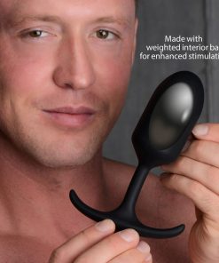 Insert and feel the satisfying weight of this comfy anal toy: The gratifying 9.2 ounce metal weight found in this Large Heavy Hitter provides a satisfying downward pull with your every movement, while also providing a solid core for you to squeeze on. Perfect for warming up the backdoor – plug your lovers booty and warm up their backdoor as you go about the home in preparation for the main anal event of the night!