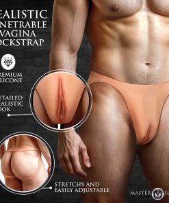 Introducing the Pussy Jockstrap, your gateway to heightened pleasure. This stunning piece features an ultra-realistic vulva designed to look and feel just like the real thing. It wears like a classic jock-strap, with only two skin-colored straps around your buttocks, leaving your booty delightfully exposed. Dive into the premium experience offered by the super-stretchy, body-safe silicone material. Enjoy the added benefit of a textured pocket at the front, perfect for accommodating your partner’s shaft for deeply satisfying penetration. Take your intimate moments to new levels with this lifelike, luxurious accessory.