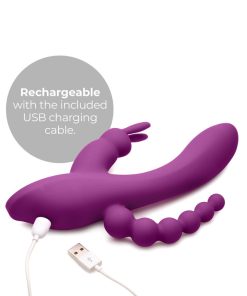 Enjoy deeply satisfying vibes down the main shaft, while you clitoris is treated to intense buzzing! The additional anal beads found on the opposite side of the clitoral stimulator provide double penetration pleasure as you push and pull this Quivers in and out of your body.