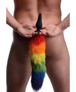 Take your sexual adventures to a fun and playful new place with a rainbow-colored tail plug! The narrow plug has a tapered tip and is made of smooth silicone for an easy insertion. Crawl around at your lovers feet to tempt them with your stuffed ass! The tail will sway back and forth with every movement of your hips! This sensual accessory is not compatible with silicone lube. Effectively clean and sterilize with mild soap and warm water after use.