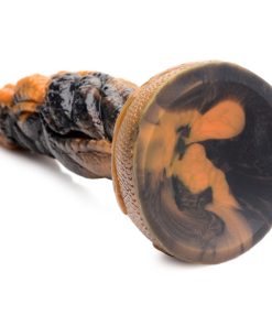 This uniquely colored Ravager dildo is marbled orange, and brown. It has a muscular, rippled, and wavy phallic tentacle that is firm and ready to penetrate! Enjoy the fine details along the shaft and the base of this beautiful dildo. The suction cup base lets you ride this hands-free, or you can pair it with a strapon harness and enjoy pegging your partner or being penetrated by their fierce, raging Ravager cock! Made of premium silicone, this dildo is easy to care for and clean and is phthalate-free and body-safe. Use with water-based lubricant only to ensure a long shelf-life.