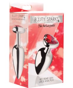 Spark your desire for decadent anal play with this beautiful Booty Sparks plug! Featuring a smooth metal finish in lightweight aluminum, it features a sweet heart shaped gem in a deep crimson red. The slim shaft will keep it from slipping out of place even during vigorous play. You will want to show off your new sparkling booty as you bend over and tease your lover. The nickel free aluminum alloy is nicely weighted and temperature sensitive for the perfect amount of sensation. When play is over, the non-porous material will clean easily without harboring any harmful bacteria. Make that booty sparkle!