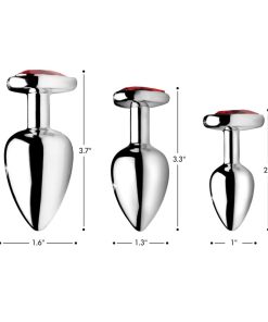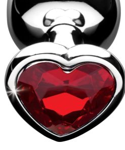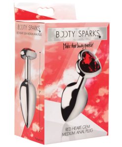 Spark your desire for decadent anal play with this beautiful Booty Sparks plug! Featuring a smooth metal finish in lightweight aluminum, it features a sweet heart shaped gem in a deep crimson red. The slim shaft will keep it from slipping out of place even during vigorous play. You will want to show off your new sparkling booty as you bend over and tease your lover. The nickel free aluminum alloy is nicely weighted and temperature sensitive for the perfect amount of sensation. When play is over, the non-porous material will clean easily without harboring any harmful bacteria. Make that booty sparkle!