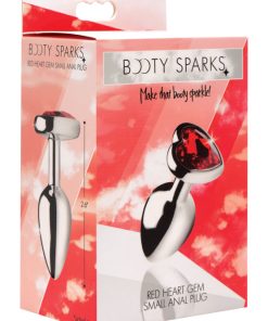 Spark your desire for decadent anal play with this beautiful Booty Sparks plug! Featuring a smooth metal finish in lightweight aluminum, it features a sweet heart shaped gem in a deep crimson red. The slim shaft will keep it from slipping out of place even during vigorous play. You will want to show off your new sparkling booty as you bend over and tease your lover. The nickel free aluminum alloy is nicely weighted and temperature sensitive for the perfect amount of sensation. When play is over, the non-porous material will clean easily without harboring any harmful bacteria. Make that booty sparkle!