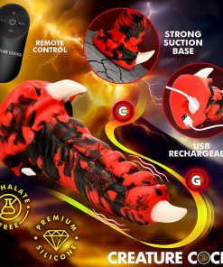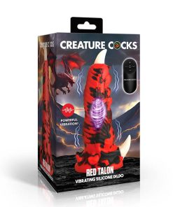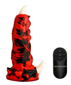 Unleash your wild side with the Red Talon Fantasy Dildo! This enticing red and black dragon finger boasts a prominent white talon on the tip and another at the base for added sensation. Experience thrilling pleasure as you ride the shaft, designed with ribs, bumps, grooves, and a scaly texture for a truly exhilarating feel. With 3 speeds and 7 powerful vibration patterns controlled by a handy remote, you’re in charge of the adventure. Enjoy hands-free play thanks to its sturdy suction-cup base that sticks to any flat surface. Crafted from premium, body-safe silicone, it’s also waterproof (IPX7) and rechargeable, perfect for shower or bath play.