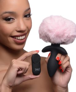 Wiggle your bottom in pleasure as this vibrating, wagging butt plug wiggles your tail! Enjoy 10 modes and 2 speeds of vibration and wagging that adds both pleasure and fun to your play! Use the battery operated remote control to change the settings once inserted or hand it to a partner for extra fun! The silky smooth silicone plug is plush and easy to insert. Enjoy the tapered tip as it slides inside. Made of phthalate-free silicone, it is body safe and perfect for long term use and wear. The fluffy tail is round and soft. Made of vegan friendly faux fur, it is easy to clean and hypoallergenic.