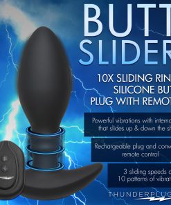 Give yourself a special treat with this sliding plug that rims your rear entry while buzzing your booty! Made out of premium quality silicone, it is soft, smooth and phthalate-free for body-safe, worry-free fun! Inside of the toy is a motor that has both sliding and vibrating features. Choose between 7 sliding speeds and 7 vibrating patterns that you control... Read more