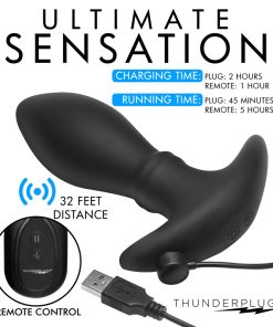 Give yourself a special treat with this sliding plug that rims your rear entry while buzzing your booty! Made out of premium quality silicone, it is soft, smooth and phthalate-free for body-safe, worry-free fun! Inside of the toy is a motor that has both sliding and vibrating features. Choose between 7 sliding speeds and 7 vibrating patterns that you control with a rechargeable remote control! The sliding functions focus on the sphincter and simulate an intense rim job and feel like getting penetrated with the tip again and again! Designed to withstand wet environments, it’s rated as IPX5 waterproof so it can handle low pressure water jets and lots of lubricant. Use water-based lubricant for best results. The tapered tip makes this plug easy to insert for those new and experienced to anal play. The slim, flared base makes this toy safe and allows you hours of secure comfort! Use the USB cable provided to recharge the plug or remote as needed. To clean, use warm water and mild soap, then rinse and spray with a toy cleaner before patting dry and storing in a cool, dark place.
