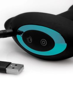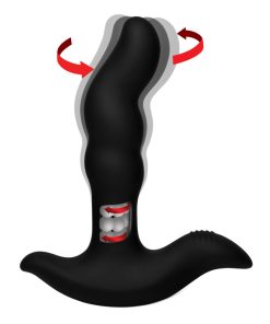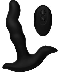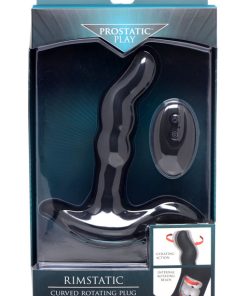 Discover new sensations in P-spot pleasure! This premium silicone prostate massager vibrates powerfully inside your booty, while also teasing your opening with rotating beads that mimic the sensation of analingus. Meanwhile, the shaft will gyrate inside your hole, brushing up against your sweet spot with its dramatic curve and bold ridges. At the base of the plug, a ribbed perineum stimulator will buzz powerfully, allowing you to indulge your body in internal and external stimulation. Use the remote control to play with 3 levels and 7 functions of vibration, and 3 speeds of rotation and gyration. The Rimstatic is made of non-porous and phthalate-free silicone. Clean after us with mild soap or toy cleaner and avoid use with silicone lubricants.