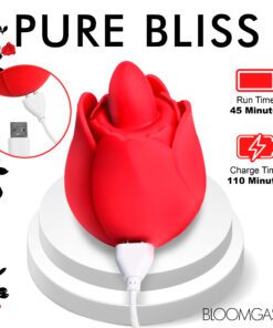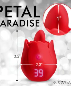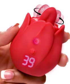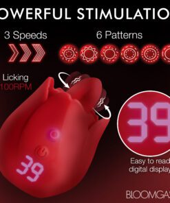 Delicately massage your precious pearl with this Licking and Vibrating rose stimulator! The soft, silicone tongue licks your clit in a circular pattern that will drive you wild! Enjoy 3 speeds and 6 patterns of licking and an additional 3 speeds and 6 patterns of buzzing vibration that will wake up your senses and feel divine! This silicone rose is made out of silky smooth, phthalate-free, body-safe materials that feel luscious to the touch. As you play with different settings, you can easily see which setting you’re on at the moment by looking at the digital, light-up display on the side of the rose. You can even read it in the dark! This rose is rated as IPX7 waterproof so you can take it in the shower or even submerge it underwater in the bathtub for up to 30 minutes! Let it delight you time and again! Recharge it after every use so it’s ready whenever you are. To clean it, wash with warm water and mild soap, then rinse and spray with a toy cleaner before storing in a cool, dark place out of direct sunlight. Recharge using the USB cable provided.