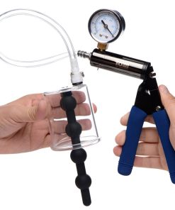 Make your A-hole swell as powerful suction increases circulation. Anal engorgement combines with penetration in this unique pumping accessory. Just stuff your booty hole with the flexible silicone beads, attach your compatible hose and pump, and begin squeezing to build pressure in the cylinder. Your anus will be sucked in, puckering out like a blooming rosebud! The 4 smooth bulbs of the anal beads will add additional stimulation as you increase the size and sensitivity of your hole, but they can also be removed from the cylinder. Both materials are non-porous, durable, and sanitize thoroughly with mild soap or toy cleaner. Avoid use with silicone lubricants.