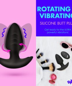 Rotating and Vibrating Silicone Butt Plug – Black