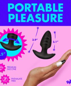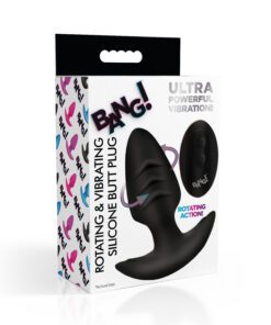 Add something more exciting to your toy bag with this rotating, vibrating butt plug! The silky smooth silicone covers the plug and feels great when slipped inside your derriere. Use some water-based lube and enjoy the ribbed texture on the sides of the shaft. The tapered tip makes it easy to get inside and the slim, textured base keeps it safely in place while also fitting comfortably between your cheeks for long-term wear. Enjoy 3 speeds and 7 patterns of powerful vibrations and scintillating rotations! This stimulating duo of sensations can be controlled from up to 26 feet away via the battery-operated remote! Use it on yourself or give your partner the control to turn you on anywhere at any time while you wear it! The silicone is phthalate-free, body-safe, and phthalate-free. Use only with water-based lubricants for best results.