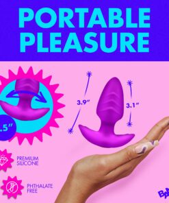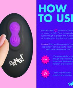 Add something more exciting to your toy bag with this rotating, vibrating butt plug! The silky smooth silicone covers the plug and feels great when slipped inside your derriere. Use some water-based lube and enjoy the ribbed texture on the sides of the shaft. The tapered tip makes it easy to get inside and the slim, textured base keeps it safely in place while also fitting comfortably between your cheeks for long-term wear. Enjoy 3 speeds and 7 patterns of powerful vibrations and scintillating rotations! This stimulating duo of sensations can be controlled from up to 26 feet away via the battery-operated remote! Use it on yourself or give your partner the control to turn you on anywhere at any time while you wear it! The silicone is phthalate-free, body-safe, and phthalate-free. Use only with water-based lubricants for best results.
