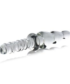 This sturdy, slick borosilicate glass thrusting toy has three graduated beads, swelling in size as you go deeper. The tapered tip is a moderate size for easy insertion, with a ribbed handle for easy grip. The non-allergenic material is body safe and compatible with all lubes. The non-porous nature of glass makes it easy to clean and sterilize. You can even heat it up or cool it down for some exciting temperature play. The shining glass is both elegant and durable, for a beautiful and sensual toy that will last and last!