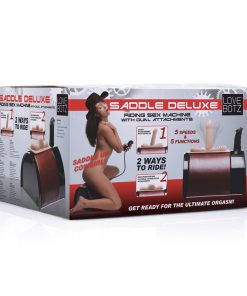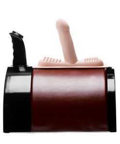 This is definitely not our first rodeo! Introducing the LoveBotz Saddle Deluxe, a high-powered piece of vibrating machinery that will take you on the ride of your life, now featuring two different attachments! One is a dildo with a smooth shaft and a bulbous head, perfect for when you are craving penetration. The textured base provides extra stimulation to your sensitive exterior. The second accessory is a non-penetrative clitoral bump that is particularly exciting for those who enjoy grinding or humping during masturbation and sex. Mount the comfortable padded seat, settling yourself on the firm, velvet-soft attachment of choice until your are against the base. The controller allows you to hang on tight while you cycle through the 5 incredible vibration speeds and 5 pulsations, but it also detaches via a retractable coil so that you can increase or decrease the speed, even as you flail in ecstasy! Hand the remote over to your partner and see how long you can keep your seat when they are in control! Grind yourself into the Saddle or lose yourself in bliss while the motor thrums powerfully against you! How many orgasms can you handle? Wipe clean with mild soap and warm water. Compatible with silicone and water-based lube.