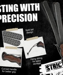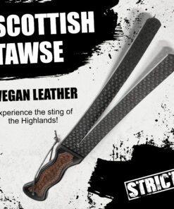 Torment your pupil or tease your submissive with this tawse whip! The split-end design was popular in Scottish schools as a form of discipline and punishment. Enjoy the detailed accents on the tails and handle of the flogger whip and the realistic look and feel of this vegan leather! It has a curved handle for easier grip and handling and a loop for hanging up when not in use. To clean it, spray with a toy cleaner and wipe it dry with a cloth. Hang it up to keep the leather from getting warped or bent.