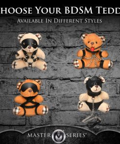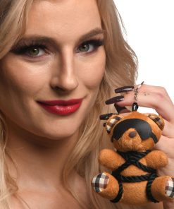 This little bondage bear just loves shi-bear-i! All tied up with silky rope and blindfolded, it’s the perfect companion for your office desk, backpack, bag, purse or keychain! Give it as a gift to your friends or keep it for yourself. It’s the cutest way to flag your kinky side! Fits in the palm of your hand. This kinky bondage bear is sure to put a smile on your face! Made out of polyester, PU faux leather, plastic and nickel-free metal.