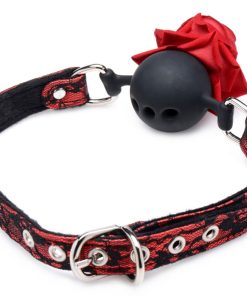 Gag them with roses with this Full Bloom silicone ball gag! The sultry red and black lace strap is comfy and provides an enticing lingerie aesthetic on your subjects face as you enjoy the realistic rose blooming from their mouth. Adjustable and comfortable for long term wear and enjoyment for you and your play thing!
