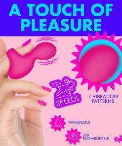 Key Features: Powerful Finger Vibe: Enjoy 3 speeds and 7 patterns of vibration! Wear it on your finger to enhance manual stimulation! Textured and Shaped: The round shape of this toy and the small, textured bumps make it ideal for massaging the sensitive G-spot! Premium Silicone: Made out of soft, silky, body-safe premium-grade silicone. Use only with water-based lubricants. Rechargeable... Read more