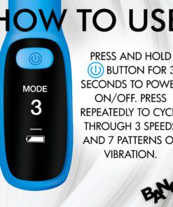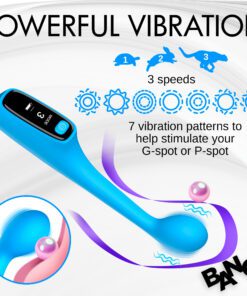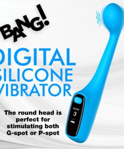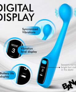 Get to that sweet spot with this digital G-spot vibrator! The silky smooth silicone glides easily in and is made of premium quality, phthalate-free, body-safe materials. The handle clearly shows the mode and battery life on an LED screen. The curved, bulb end lets you push, rub, and massage the G-spot without getting into strained positions! You can use it on yourself or a partner and experience new levels of ecstasy! Enjoy any of the 3 speeds and 7 patterns of vibration as it buzzes deep inside! Rated IPX7, it can be submerged for up to 30 minutes in water and easily handles powerful shower jets. After playing with it, wash it with warm water and mild soap, then rinse it off and spray it with a toy cleaner. Pat dry and store in a cool, dark place. Recharge using the USB cable provided. Replace remote battery as needed. Use only water-based lubricants for best results.