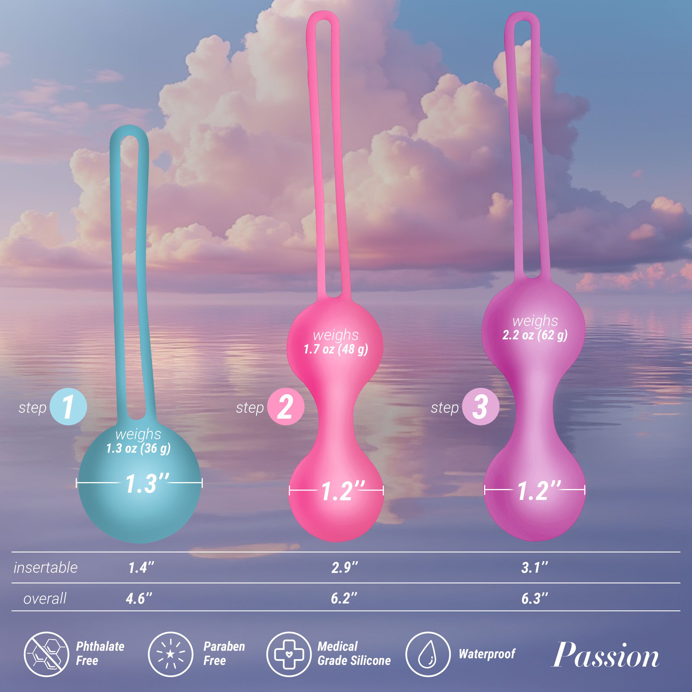 • Weighted with Steel: The steel inside the ball ranges from 1.3 oz to 2.2 oz, so you can enjoy feeling the weighted sensation as you grip with your pelvic muscles.