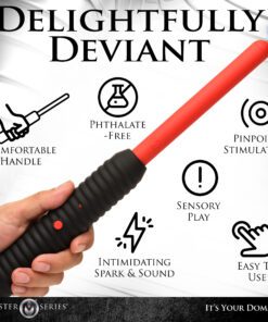 Zap your partner or submissive at any time with this easy to use, fun, Spark Rod Zapping Wand! The handle and shaft is made out of plastic so it insulates you from the electricity. Press the button on the side of the easy to grip, ribbed handle and you’ll be able to shock your partner! All the electricity gets channeled through the tip for pinpointed pain and sensation. Spice up any kinky scene with this wand! In order to use it, you’ll need two AA batteries (not included).