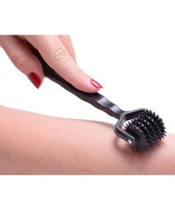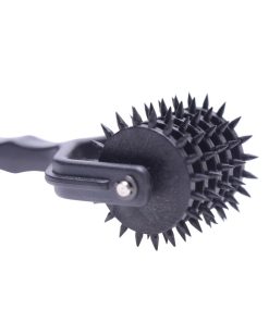 This modern take on a Wartenberg wheel features a row of 5 spikey pinwheels for your pin-pricking pleasure. The ergonomically-shaped handle allows for good grip in those hot and heavy moments when you want to deliver a subtle but sharp sensation. The smooth rolling motion will glide over the whole body, dipping easily into those most sensitive spots. Ideal for sensation play, this device pairs well with a blindfold to keep your partner guessing where they will feel that delightful sting next. Lightweight and travel-friendly, this pinwheel is a simple way to spice up any sexual experience.