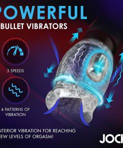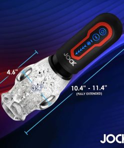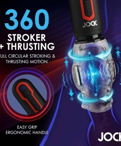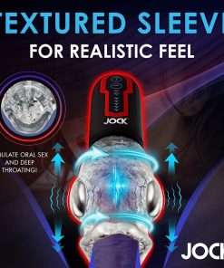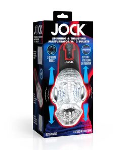 Indulge in ultimate pleasure with our Spinning and Thrusting Masturbator by JOCK, designed for maximum satisfaction. This body-safe rubber sleeve, featuring a full-lipped mouth opening and grippy interior nubs, guarantees thrilling sensations and massages the shaft with each stroke. Choose from 5 spinning and thrusting modes, along with 3 speeds and 4 patterns of vibration to keep your excitement soaring! Enhance your experience further with dual bullets that slip into the side pockets of the sleeve. Rechargeable via the included USB cable and splashproof (IPX5 rated), this toy is your ticket to continuous bliss. Order today for an extraordinary experience!