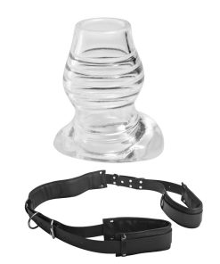 Keep them spread open wide with this ultimate inner access system! The adjustable body harness will keep their legs spread, comfortably wrapping around the neck and pulling their knees back. The hollow plug will spread their ass open a full inch and a half, leaving their innermost areas exposed and at your mercy. Use the tunnel to insert anything that will fit. You are only limited by your filthy imagination.