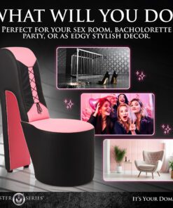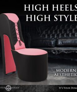 • Add this iconic stiletto heel chair to your house or dungeon decor! It’s perfect for a bachelorette party or any steamy sex room! Inspired by the famous stiletto heel chairs that were popular in the 70’s, this stylish chair is great for everything from pin-up poses to being pinned up against it by your partner! The smooth, sleek, vegan leather covers soft, cushioned foam padding. The strong, sturdy design is due to the eucalyptus wood that was used to build it. Enjoy sitting and being seduced, worshiped, and admired while perched atop the chair! Straddle it to enjoy a comfortable position while getting attention from behind! Kneel on the padded heel to get into the perfect position above your partner while they grab your hips from behind and please you!