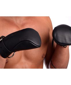 Keep their busy little hands out of the way with these Strict Leather Deluxe Padded Fist Mitts. Made from soft garment leather, they will keep your partners hands comfortable while unable to use them. Each mitt is secured by a 1.5 inch leather strap with buckle. Another great feature is the D-Ring on each of these mitts, giving you the chance to attach their hands to any object if desired! Designed for a tight fit, this design forces the wearer to keep the hand in a fist. Removing the ability to open the hand is a higher level of restrictiveness and can be appreciated by serious bondage lovers.