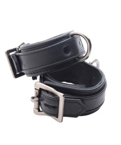 Dress your submissive lover up in an elegant and luxurious set of wrist cuffs from Strict Leather. Durable and secure, these essential accessories were designed with exquisite detail in mind. Featuring a locking buckle that allows you to keep your precious play thing under lock and key, these premium leather cuffs are narrower for a more stylish fit. D-rings allow you to attach a connector chain, rope, or a variety of devious accessories. Whether they wear them in the privacy of your scenes or out for the world to see, these beautifully crafted and timeless symbols of ownership will leave no question of your devotion to each other. Adorn your most prized possession in a set of cuffs that match their sophistication and keep them securely under your command.