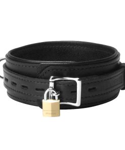 The Strict Leather Premium Leather Locking Collar is the highest quality collar we offer. It is reinforced with three layers of leather. This heavy duty design provides additional security and weighs 9 oz. Our locking buckle design can be used with or without a lock.
