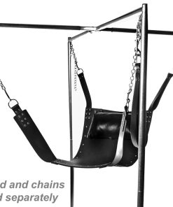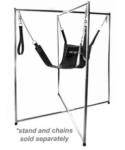 The Strict Leather Premium Black Leather Sex Sling is constructed of thick latigo leather with layered support straps. It comes with a set of leather stirrups, plush leather pillow and D-rings for all of your attachment needs. The sling is hung from above using four ropes or chains of your choosing, not included.