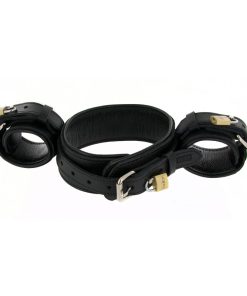This is the ultimate in restraints and will certainly top off any fetish outfit with another dimension of sexiness. The person wearing the Wrist to Neck Restraint is forced to maintain a rigid posture while their wrists are behind their back. Rolling buckles allow you to adjust both collar and cuffs, and a ring on the front of the collar allows you to attach a leash or your favorite accessory. Keep them right where you want them in this effective, premium-quality collar and cuff restraint!